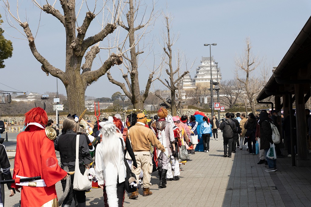 全国から集まったコスプレイヤーが、大手前公園~姫路城周辺の無料エリアで自由に交流・撮影を楽しめます。石垣や神社など歴史あるロケーションで撮影できるのも魅力の一つです。
