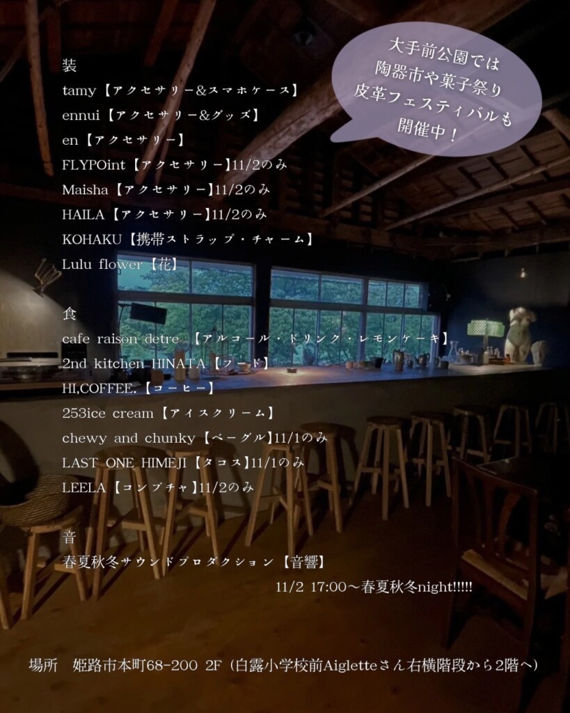 ※11/1のみ、11/2のみの出店者さんもいらっしゃるので、お目当てのお店がある方はお間違いなく!