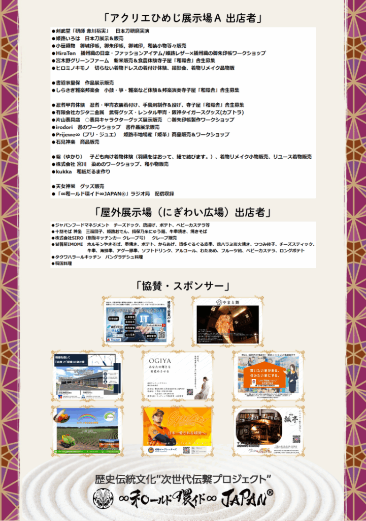 | 主催・問合せ | 歴史伝統文化”次世代伝繋プロジェクト” ∞和ワールド環イド∞ JAPAN® 事務局 TEL: 090-4284-7225 |