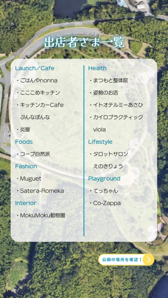 爽やかな秋空の下、広大な芝生広場に、美味しいグルメ、素敵な雑貨、心と体を癒すブース、そして子供たちが遊べるプレイグラウンドまで、多彩なお店が大集合!