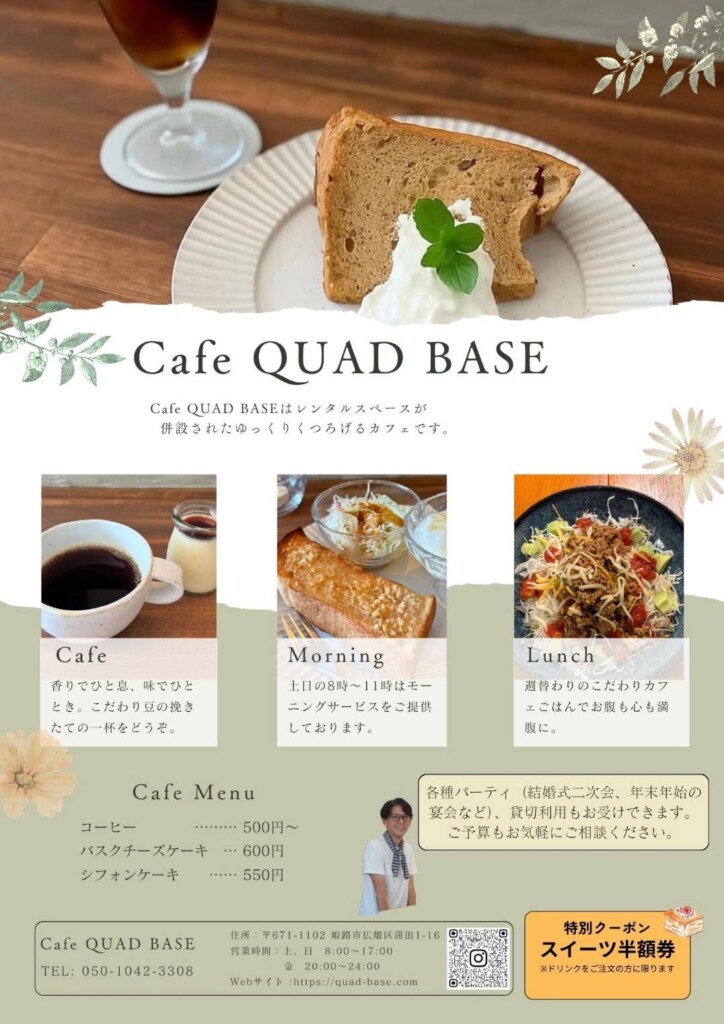 広畑区のおしゃれカフェ「Cafe QUAD BASE (カフェ クアッドベース)」さんから、わくわくするニュースが届きましたよ!
